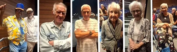 “Tô com 100 anos, tô muito bem no Retiro dos Artistas. Ninguém me incomoda, não incomodo ninguém. Gostei muito da apresentação da Zezé Motta. Senti emoção!” – comemora Holdira de Oliveira Martins, atriz circence, irmã do compositor Herivelto Martins, conhecida como Piuxa.