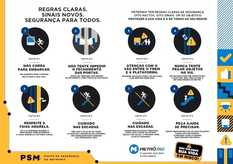 A campanha "Pacto de Segurança no MetrôRio" faz um compilado de regras e protocolos adotados em várias situações e ações que acontecem diariamente no sistema metroviário.