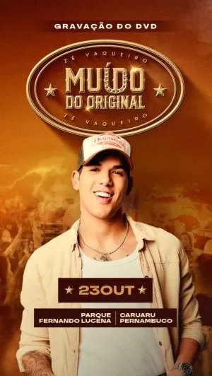 O artista preparou um repertório inédito para este projeto, que conversa com um álbum recentemente divulgado na plataforma Sua Música como um “esquenta” para os fãs. “Esse projeto é muito especial pra mim, já fizemos alguns muídos e queria fazer algo ainda mais especial. A vaquejada é uma parte especial da minha vida e o Muído do Original carrega a identidade do Zé Vaqueiro, sabe? Tenho certeza que será uma noite especial”, afirma o cantor.