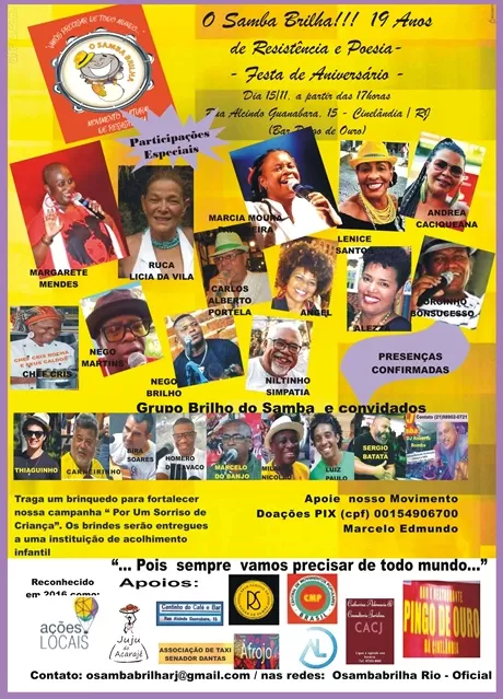 No próximo dia 15 de novembro, a partir das 17h, vamos celebrar 19 anos de história, resistência e poesia!