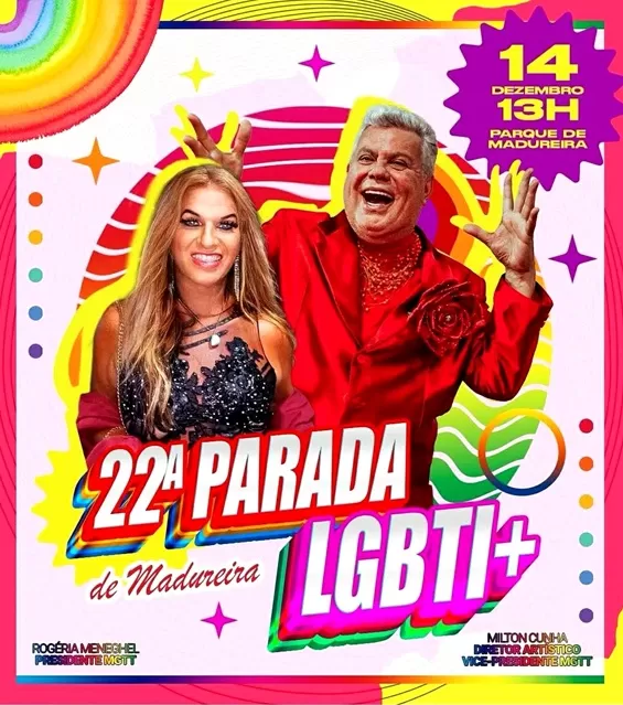 Neste domingo, dia 14, a Zona Norte vai vibrar com muita cor, orgulho e resistência! A 22ª Parada LGBTI+ de Madureira toma conta do Parque Madureira a partir das 9h da manhã, celebrando a diversidade e fortalecendo nossa comunidade em mais um momento histórico de luta, resistência e rogunho.