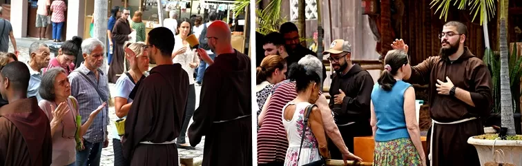 Ao longo de todo o dia, os frades conduzem missas, cânticos e momentos de oração, culminando na bênção que se tornou símbolo do carisma capuchinho. O pátio da Basílica transforma-se em um verdadeiro santuário a céu aberto, onde pedidos, agradecimentos e preces por saúde, paz e prosperidade se entrelaçam em um ambiente de profunda fé.