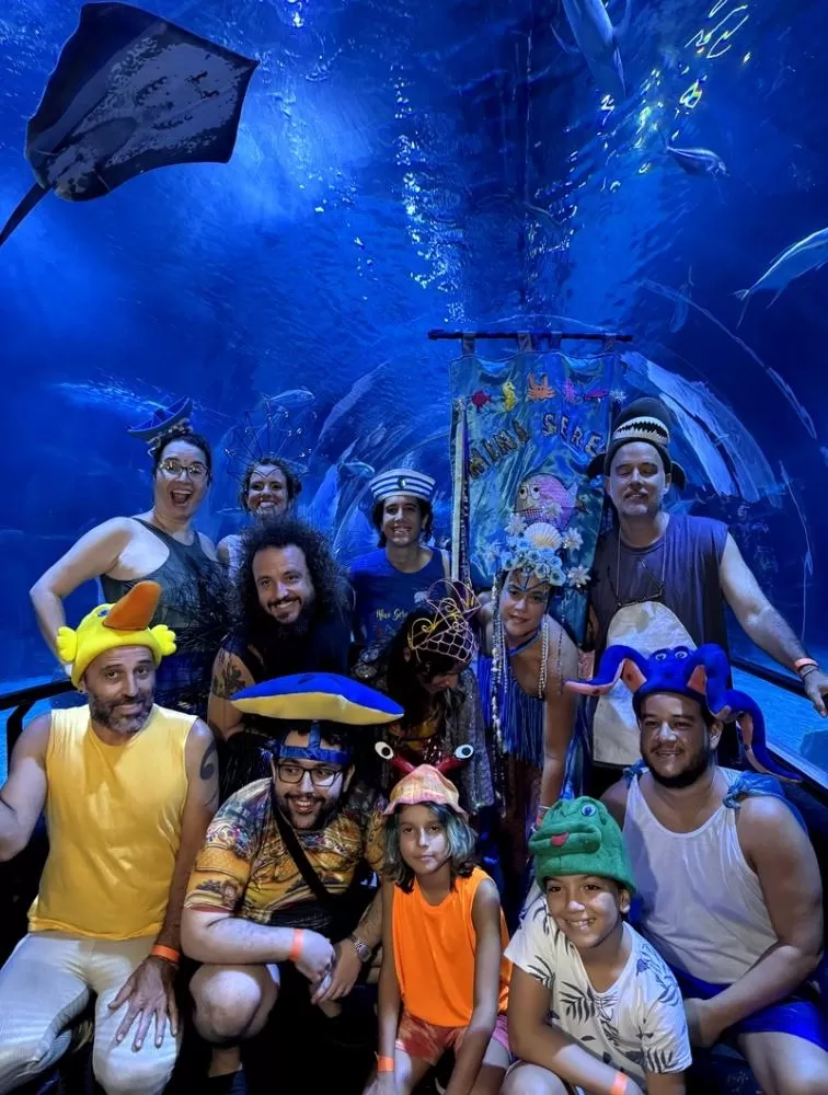 Um dos destaques do fim de semana é a apresentação do bloco Mini Seres do Mar, que leva para o AquaRio um repertório alegre e afetivo inspirado nos mares, nas águas e nos animais marinhos. O bloco reúne dezenas de músicos e artistas, com uma formação que foge do tradicional ao misturar instrumentos como violino, sanfona e percussão. As canções passeiam por diferentes ritmos e dialogam com várias gerações, criando um carnaval pensado para toda a família. A atração é realizada no lobby, no dia 7 (sábado), das 11h às 12h15.