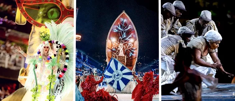 1a Foto: Mocidade Independente de Padre Miguel (Imagem: @riocarnaval) / 2a Foto: Beija-Flor de Nilópolis (Imagem: @amichavy e @danilo.filme) / 3a Foto: Unidos da Tijuca (Imagem: @riocarnaval)