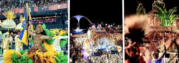 1a Foto: Paraíso do Tuiuti (Imagem: @riocarnaval) / 2a Foto: Unidos de Vila Isabel (Imagem: @riocarnaval) / 3a Foto: Acadêmicos do Grande Rio (Imagem: @riocarnaval)