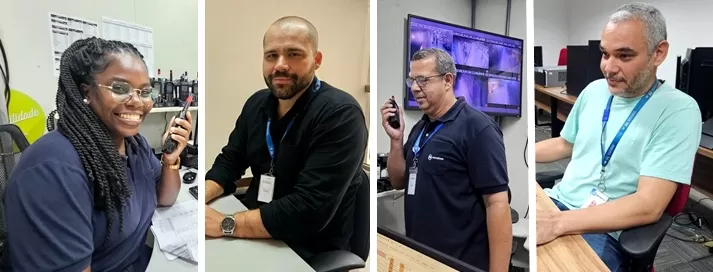 1a Foto: Auxiliar de Tráfego Tulaine Senra / 2a Foto: Engenheiro Máximo Santana Chaves / 3a Foto: Auxiliar de Tráfego Roberval Benício / 4a Foto: Analista de TI Daniel Moraes