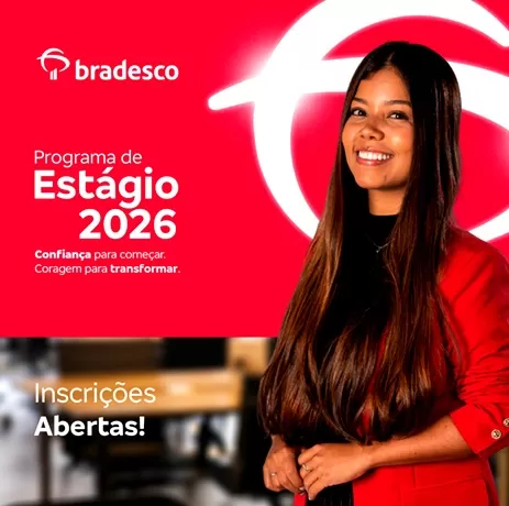 O Bradesco anuncia a abertura de inscrições para o Programa de Estágio 2026, voltado a estudantes que desejam iniciar sua trajetória em um ambiente colaborativo, acolhedor e orientado ao aprendizado contínuo. Guiado pelo mote 'Confiança para começar. Coragem para transformar', o programa convida universitários de todo o país a darem o primeiro passo na carreira com suporte estruturado, vivências práticas e oportunidades reais de evolução em diferentes frentes do negócio. As inscrições estão abertas até 7 de abril, pelo link Bradesco - Programa de Estágio 2026.