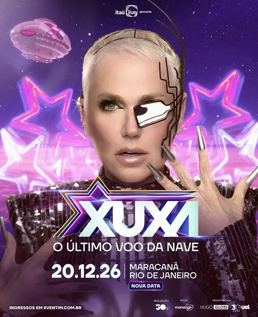A icônica nave da Xuxa anuncia a sua chegada em um dos estádios mais emblemáticos do mundo: o Maracanã, no Rio de Janeiro, no dia 20 de dezembro. O show teve ingressos esgotados no Allianz Parque, em São Paulo, no dia 25 de julho, e a capital paulista já tem uma data extra confirmada, no mesmo local, em 31 de julho. Hoje, no dia do aniversário da artista, os baixinhos recebem a notícia de que poderão presenciar esse espetáculo na cidade onde a estrela construiu grande parte da sua trajetória e se consagrou como um dos maiores fenômenos da cultura pop brasileira. A proximidade da data do espetáculo com o final de ano reforça a nostalgia e os tradicionais especiais no Maracanã, que, por muitos anos, marcaram o calendário da capital fluminense. A turnê “O Último Voo da Nave” é uma realização da 30e, maior companhia brasileira de entretenimento ao vivo, e apresentado por Itaú Live, plataforma proprietária de música do Itaú Unibanco; o projeto também tem o apoio da Monange.