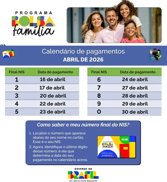 Em abril, 1.401.468 famílias em todos os 92 municípios do Rio de Janeiro estão contempladas com o Bolsa Família. Para isso, o investimento do Governo do Brasil no estado supera R$ 938,3 milhões. O valor garante um benefício médio de R$ 671,36. O cronograma de pagamentos tem início nesta quinta-feira, 16 de abril, e segue até o dia 30, de acordo com o final do Número de Identificação Social – NIS (confira abaixo).